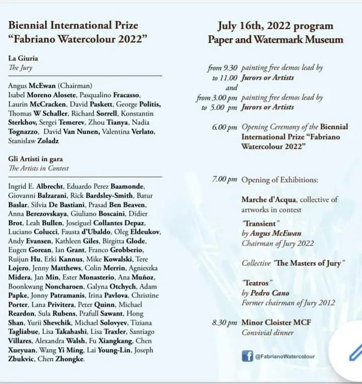 Biennale Internazionale “Fabriano Acquerello 2022” alla quale partecipo con grandi artisti a livello internazionale con la mia opera “Tucano“